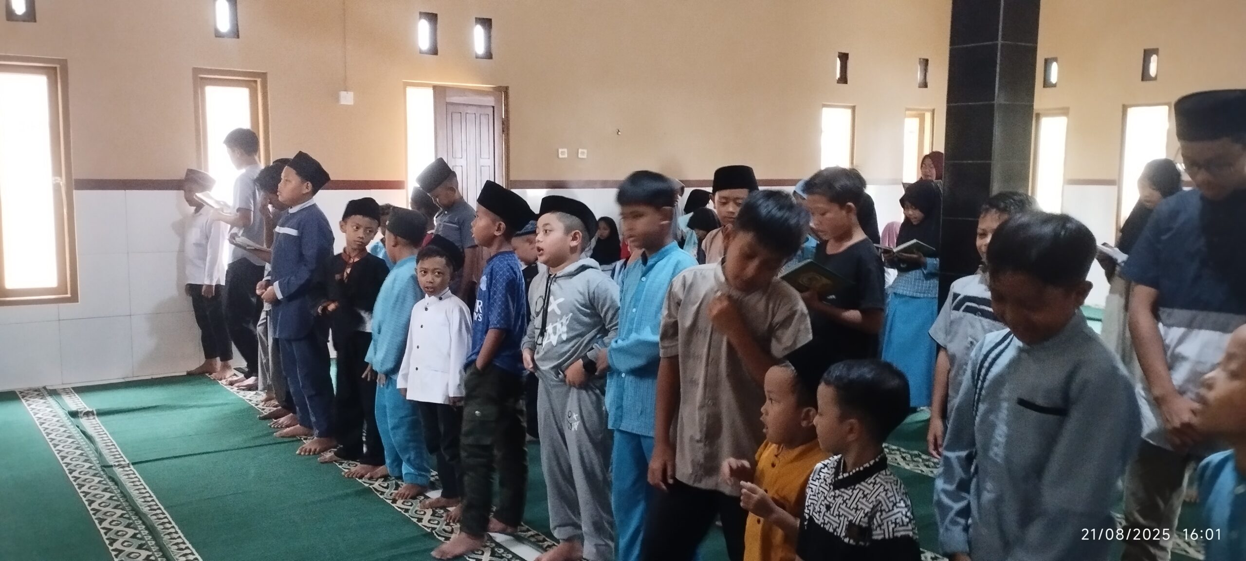Cigoong PR– ( 21 Agustus 2025 ), Suasana khidmat terasa di Taman Pendidikan Al-Qur’an (TPQ) Cigoong pada Kamis sore (21/8/2025), ketika para santri berkumpul untuk melaksanakan pembacaan rutin kitab Rawi. Tradisi ini sudah menjadi agenda mingguan yang bertujuan untuk menanamkan kecintaan kepada Nabi Muhammad SAW sekaligus memperkuat nilai keislaman sejak usia dini.