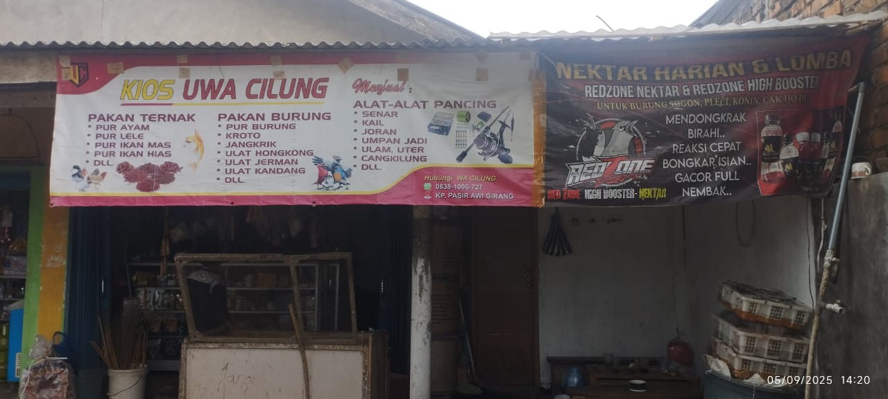 Kalapanunggalupdate.com– Bagi para penghobi ternak, pecinta burung kicau, maupun pemancing, kini tak perlu bingung lagi mencari kebutuhan pakan maupun perlengkapan hobi. Kios Uwa Cilung, yang berlokasi di Kampung Pasir Awi Girang, hadir dengan beragam produk lengkap dan harga bersahabat. ( 5/9/2025 ).