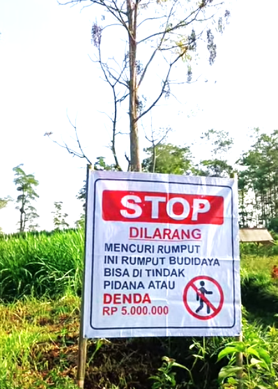 “Pemasangan merek atau papan peringatan ini karena saya sudah lelah dengan perilaku pencuri rumput milik saya. Maka dengan terpaksa saya pasang tanda ini supaya menjadi peringatan bagi para pencuri agar tidak melakukannya kembali, sekaligus memberikan efek jera,” tegasnya.