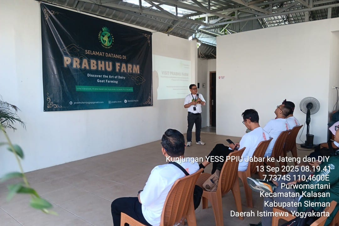 Sebagai bagian dari rangkaian kegiatan studi banding, rombongan YESS PPIU Jawa Barat melakukan kunjungan ke Prabhu Farm, sebuah peternakan kambing perah modern yang berlokasi di Purwomartani, Kecamatan Kalasan, Kabupaten Sleman, Daerah Istimewa Yogyakarta pada 13 September 2025.