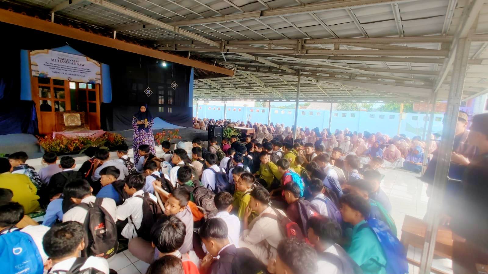 Kepala SMPN 1 Kalapanunggal dalam sambutannya menyampaikan bahwa peringatan Maulid Nabi harus dimaknai sebagai ajang pembentukan karakter dan akhlak siswa.
