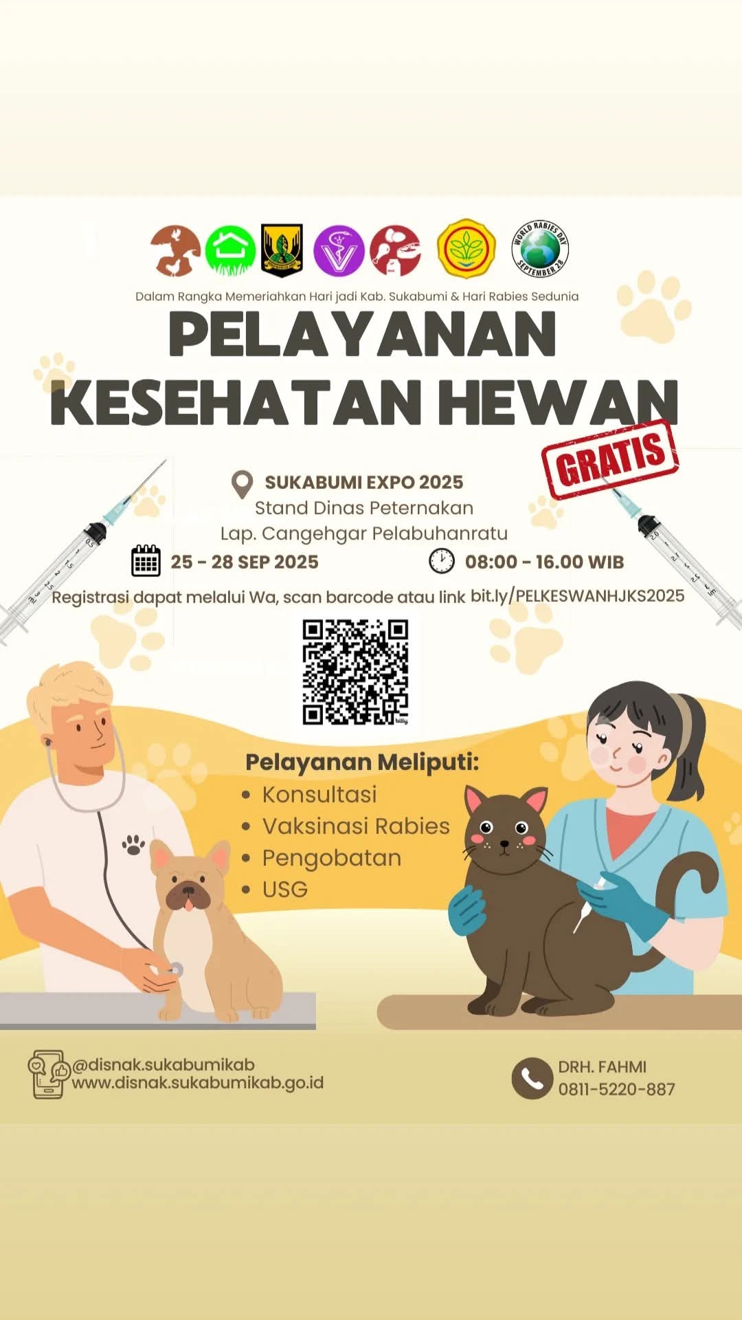 Kalapanunggalupdate.com, – ( 23/9/2025 ). Dalam rangka memeriahkan Hari Jadi Kabupaten Sukabumi sekaligus memperingati Hari Rabies Sedunia, Dinas Peternakan Kabupaten Sukabumi menghadirkan Pelayanan Kesehatan Hewan Gratis bagi masyarakat.