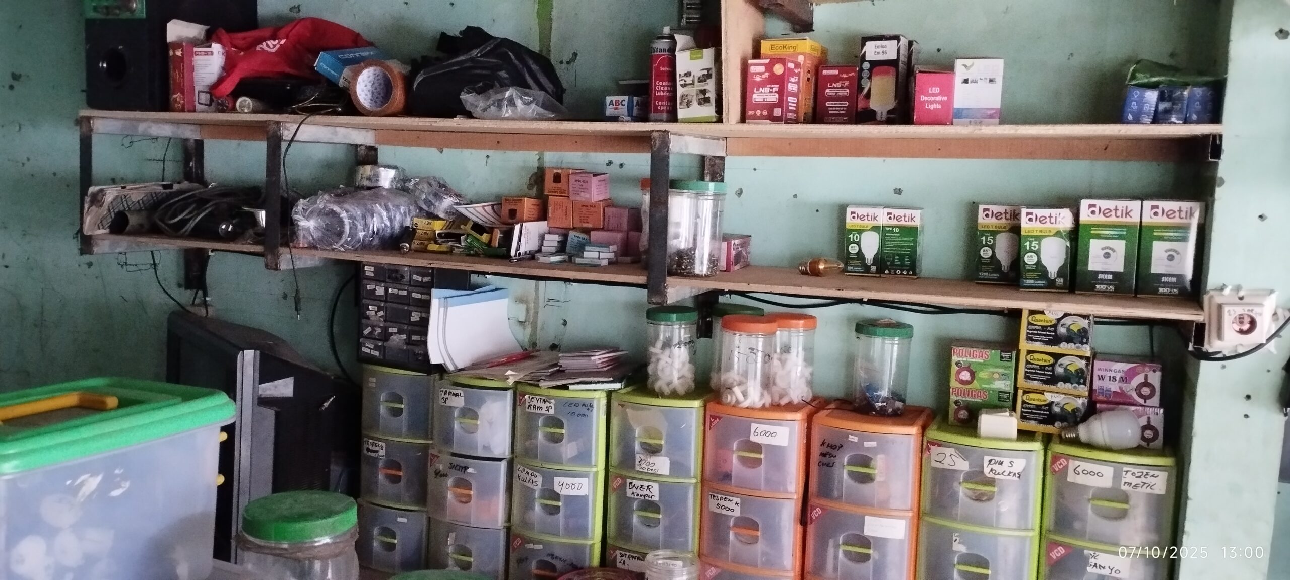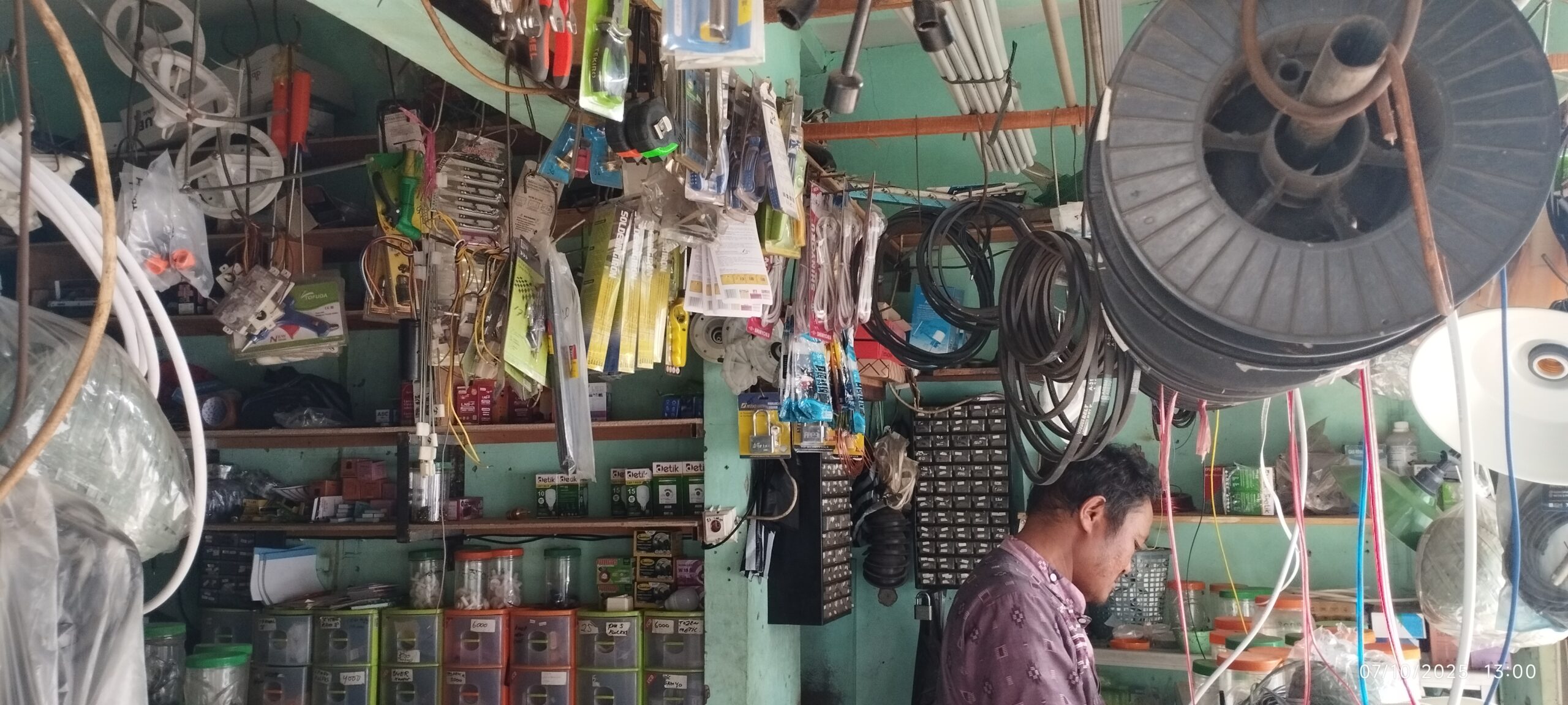 kelengkapannya yang luar biasa — mulai dari kabel berbagai ukuran, saklar, fitting lampu, pipa listrik, terminal, lampu hemat energi, hingga berbagai perlengkapan elektronik lainnya. Semua produk tersusun rapi dan siap memenuhi kebutuhan pelanggan, baik grosir maupun eceran.