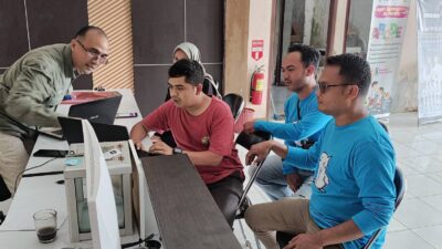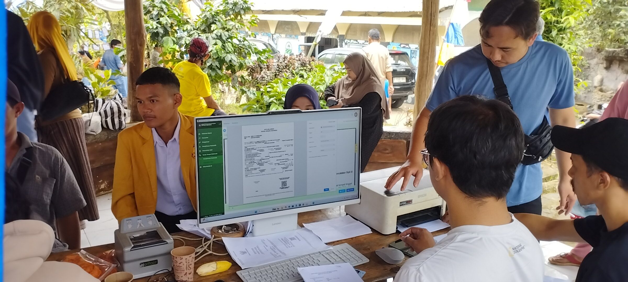 Selain petugas Disdukcapil, tampak pula sejumlah mahasiswa dan relawan muda yang turut membantu proses administrasi digital di lapangan, mulai dari input data hingga pencetakan dokumen.