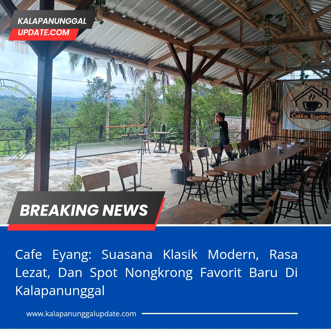Dengan perpaduan konsep klasik dan modern, pelayanan ramah, serta panorama alami khas Kalapanunggal, Cafe Eyang sukses menciptakan suasana hangat yang membuat siapa pun betah berlama-lama. Tidak heran jika tempat ini kini menjadi salah satu destinasi kuliner dan nongkrong favorit di Sukabumi bagian timur.