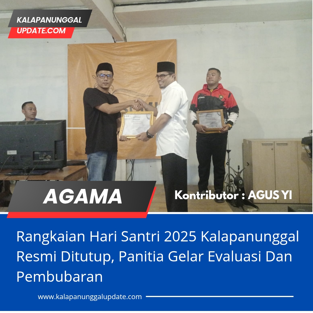 Kalapanunggalupdate.com, – ( 31/10/2025 ). Rangkaian peringatan Hari Santri Tahun 2025 tingkat Kecamatan Kalapanunggal resmi ditutup dengan kegiatan laporan, evaluasi, sekaligus pembubaran panitia pada Jumat (31/10/2025). Agenda tersebut digelar di Tansumi Coffee, Desa Palasarigirang, Kecamatan Kalapanunggal mulai pukul 13.00 hingga 15.30 WIB.