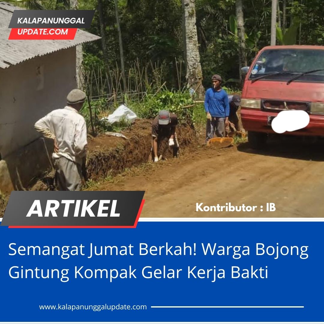 Kalapanunggalupdate.com, Bojong Gintung– (7/11/2025 ). Warga Dusun Bojong Gintung, Desa Pulosari, kompak melaksanakan kerja bakti pada Jumat Berkah (07/11). Kegiatan gotong royong ini dilakukan sesuai arahan Gubernur Jawa Barat yang mengusung semangat “Kampung diurus, Kota ditata” sebagai upaya memperkuat lingkungan yang bersih, sehat, dan berdaya.