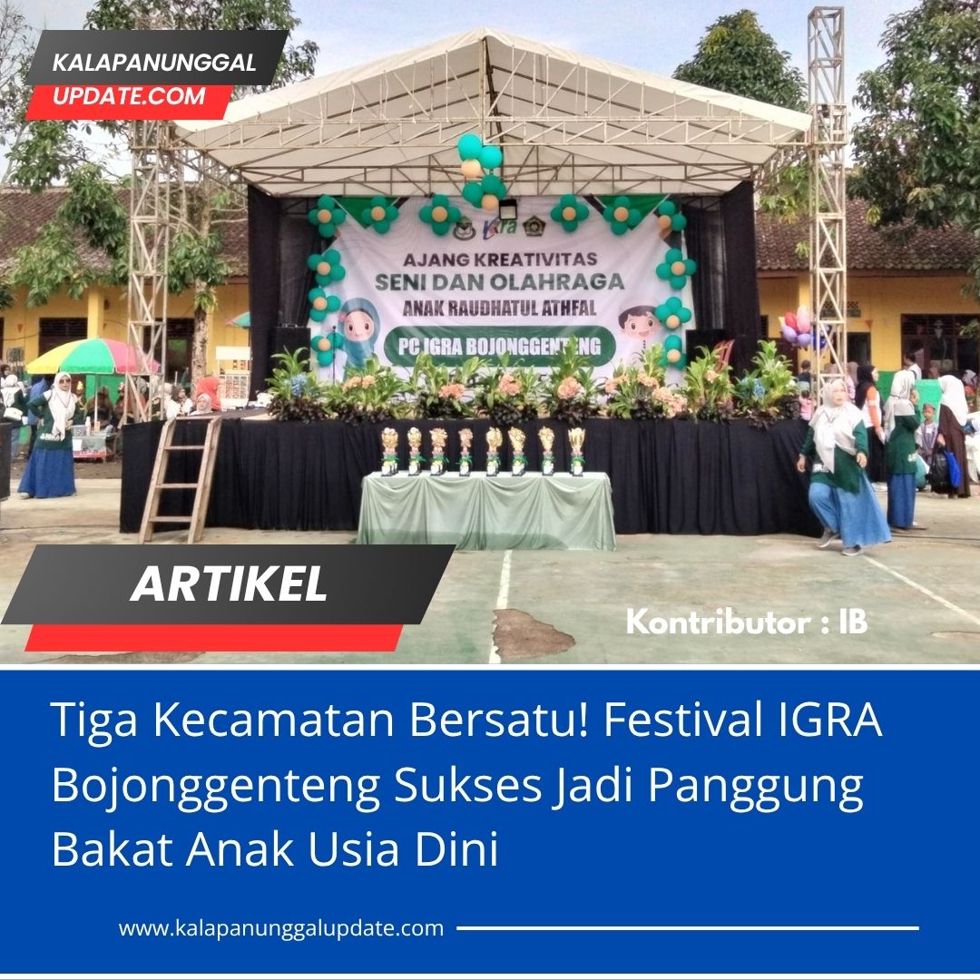 Kalapanunggalupdate.com. Bojonggenteng – ( 9/11/2025 ). Ajang kreativitas, seni dan olahraga yang digelar Persatuan Guru RA (IGRA) Kecamatan Bojonggenteng berlangsung meriah di halaman MI Almaariz Bojonggenteng, Sabtu (…). Kegiatan ini diikuti ratusan siswa RA dari tiga kecamatan, yakni Kalapanunggal, Bojonggenteng, dan Kabandungan.