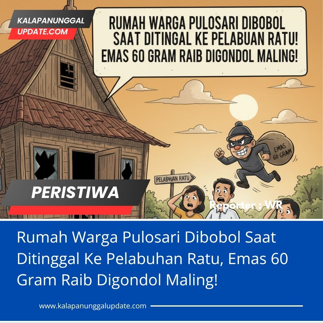 Kalapanunggalupdate.com, Desa Pulosari. (09/11/2025) – Aksi perampokan disertai pembongkaran rumah kembali mengguncang warga Desa Pulosari, Kecamatan Kalapanunggal, Kabupaten Sukabumi. Sebuah rumah milik Mitra Juarsih, warga RT 36 RW 02, menjadi sasaran pelaku kejahatan yang diduga beraksi pada Minggu, (09/11/2025) siang hari.