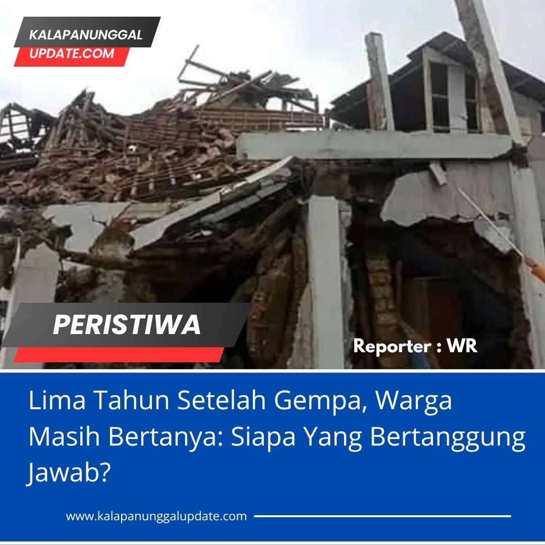 Kini, lima tahun sudah berlalu, namun bayangan gempa itu masih menghantui. Banyak rumah yang belum sepenuhnya pulih, bahkan sebagian warga masih tinggal di bangunan seadanya. Pertanyaannya—siapa yang harus disalahkan? Alam yang mengguncang, atau tangan-tangan yang seharusnya sigap namun tak hadir saat rakyatnya terpuruk?