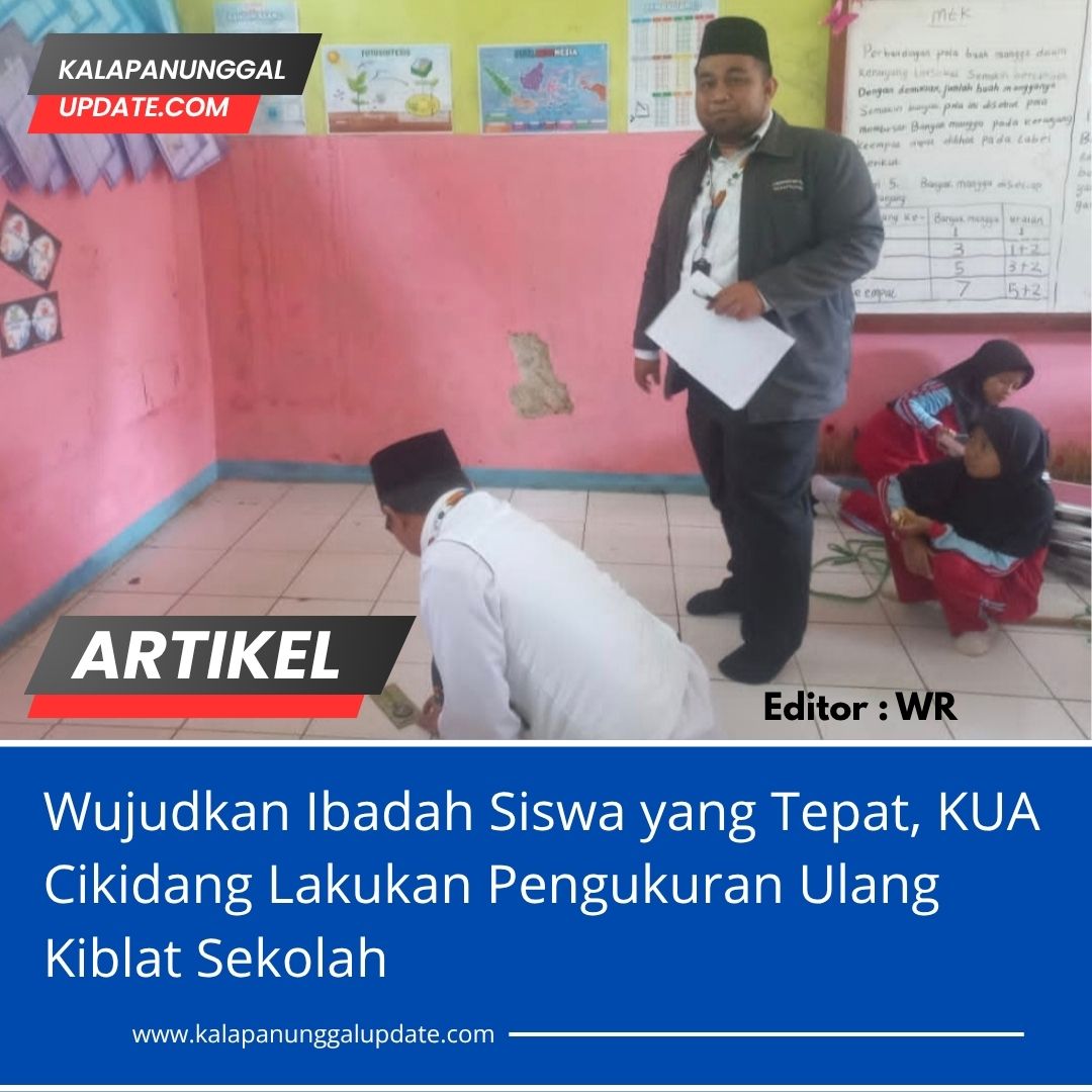 Kalapanunggalupdate.com. Kecamatan Cikidang, – ( 18/11/2025 ). Kantor Urusan Agama (KUA) Kecamatan Cikidang kembali melakukan pelayanan syariat di dunia pendidikan. Kali ini, petugas KUA hadir di SDN 02 Sampora untuk melaksanakan kalibrasi arah kiblat pada ruang yang digunakan siswa untuk shalat berjamaah. Kegiatan ini sekaligus menjadi bagian dari program berkelanjutan KUA Cikidang dalam memastikan seluruh fasilitas ibadah di sekolah-sekolah wilayah Kecamatan Cikidang mengarah dengan akurat.