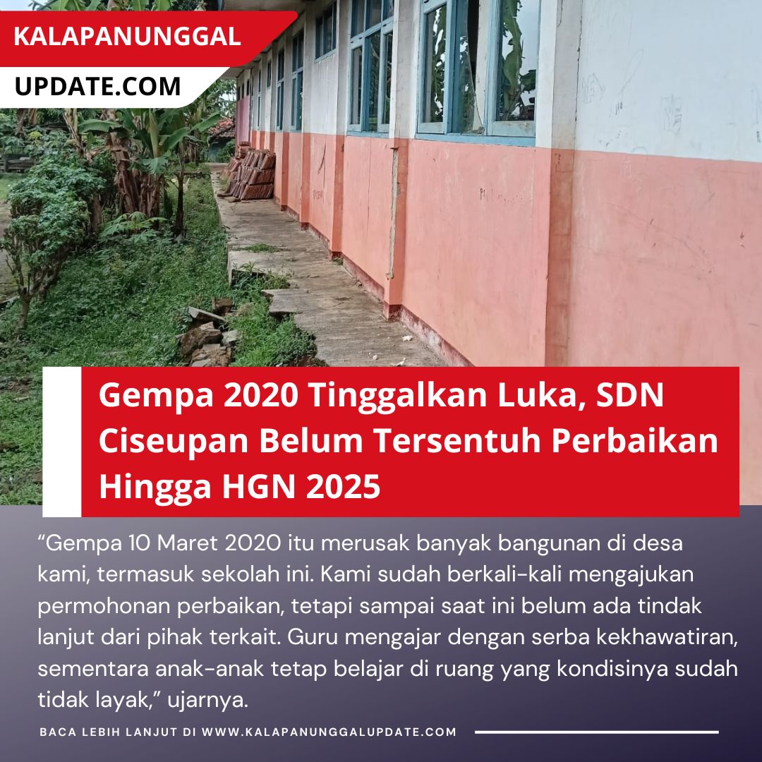 Kondisi memprihatinkan ini bermula dari dahsyatnya guncangan gempa tektonik berkekuatan 5,0 magnitudo yang mengguncang wilayah tersebut pada Selasa (10/3/2020). Getaran kuat yang ketika itu mengejutkan warga Pulosari meninggalkan dampak serius pada infrastruktur, termasuk bangunan SDN Ciseupan yang mulai retak, amblas, dan mengalami kerusakan struktural yang signifikan.
