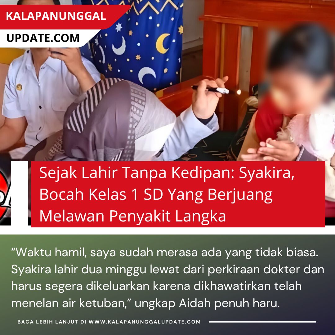 Kalapanunggalupdate.com, Caringin, Sukabumi, — ( 29/11/2025 ). Sebuah kisah haru datang dari Kampung Panagan, Desa Pasirdatar Indah, Kecamatan Caringin, Kabupaten Sukabumi. Syakira Auni Azmi, bocah perempuan berusia 7 tahun, harus menjalani hari-harinya dengan kondisi medis langka. Sejak lahir, Syakira tidak dapat mengedipkan kedua matanya dan bibir bagian atasnya kaku, sehingga menyulitkan aktivitasnya sehari-hari, termasuk saat berbicara maupun mengekspresikan emosi.