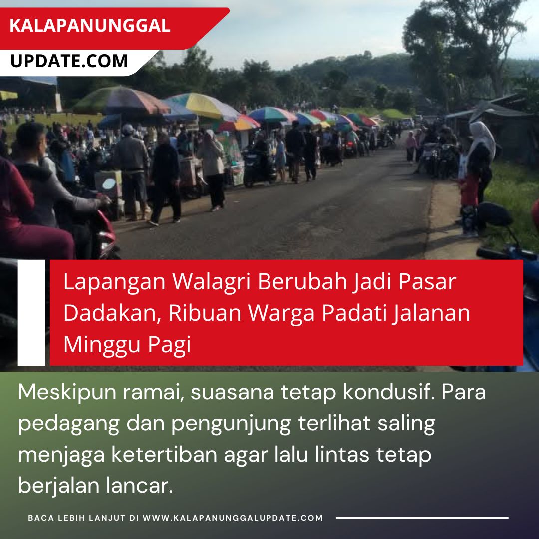 Kalapanunggalupdate.com, Parakansalak, – ( 30/11/2025 ). Aktivitas di sekitar lapangan sepak bola Walagri Parakansalak tampak jauh lebih ramai dari hari biasanya. Deretan pedagang kaki lima memenuhi hampir seluruh sisi jalan, membentangkan payung-payung warna-warni dan memajang berbagai jenis dagangan. Mulai dari makanan, minuman, hingga aneka barang kebutuhan rumah tangga tampak ditawarkan kepada para pengunjung yang berdatangan sejak pagi hari.