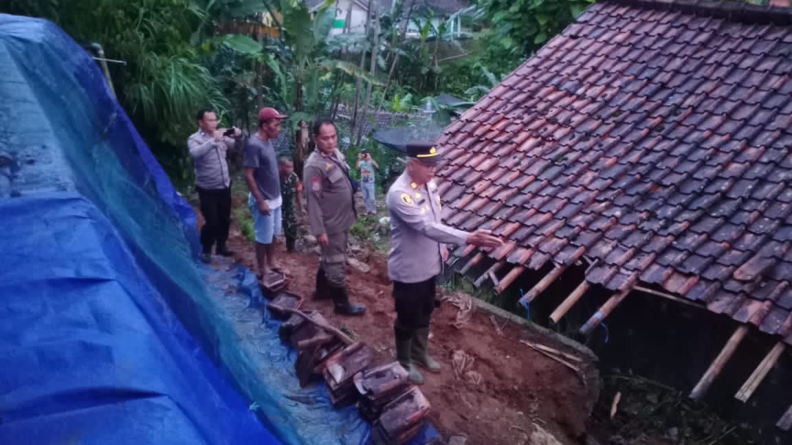 Berdasarkan pantauan di lokasi, jajaran Forkopimcam Kecamatan Kalapanunggal bersama unsur TNI, Polri, dan Satpol PP terlihat turun langsung meninjau keadaan pasca longsor. Dalam foto tampak petugas dengan seragam lengkap menelusuri tepian longsor, memeriksa struktur bangunan warga yang sebagian atapnya tertutup tanah dan genteng mulai bergeser. Sejumlah rumah terlihat berada tepat di bawah tebing, sehingga rawan terjadinya longsor susulan jika cuaca buruk kembali terjadi.