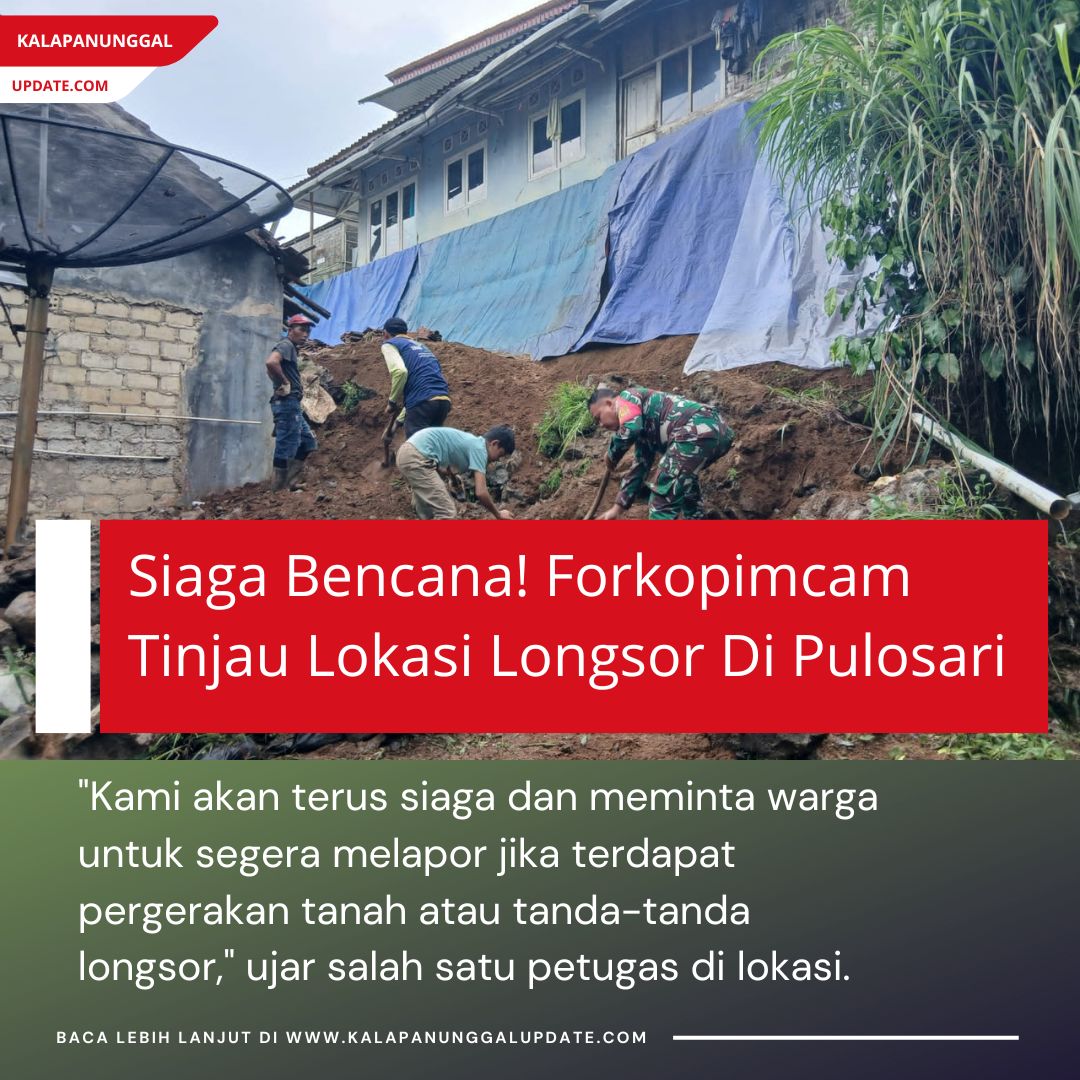 Kalapanunggalupdate.com, Desa Pulosari, Kalapanunggal, – ( 4/12/2025 ). Hujan deras yang mengguyur wilayah Desa Pulosari pada Rabu sore sekitar pukul 14.00 WIB tak hanya mengakibatkan pemadaman listrik di 22 rumah warga RT 14, namun juga memicu terjadinya longsor di wilayah RT 34. Material tanah dari tebing yang tak mampu menahan debit air hujan merosot hingga menimpa sebagian area permukiman warga di bawahnya. Masyarakat yang panik segera berhamburan keluar rumah untuk memastikan kondisi keluarga dan lingkungan mereka.