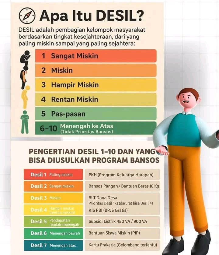 Kalapanunggalupdate.com, Sukabumi, – ( 7/12/2025 ). Tak sedikit warga yang masih kesulitan mengetahui status DESIL mereka, padahal informasi ini sangat berpengaruh terhadap penerimaan bantuan sosial seperti Program Keluarga Harapan (PKH), BPJS Kesehatan PBI, serta berbagai skema bantuan lain dari pemerintah. Kini, masyarakat bisa mengecek status tersebut dengan jauh lebih mudah melalui laman resmi