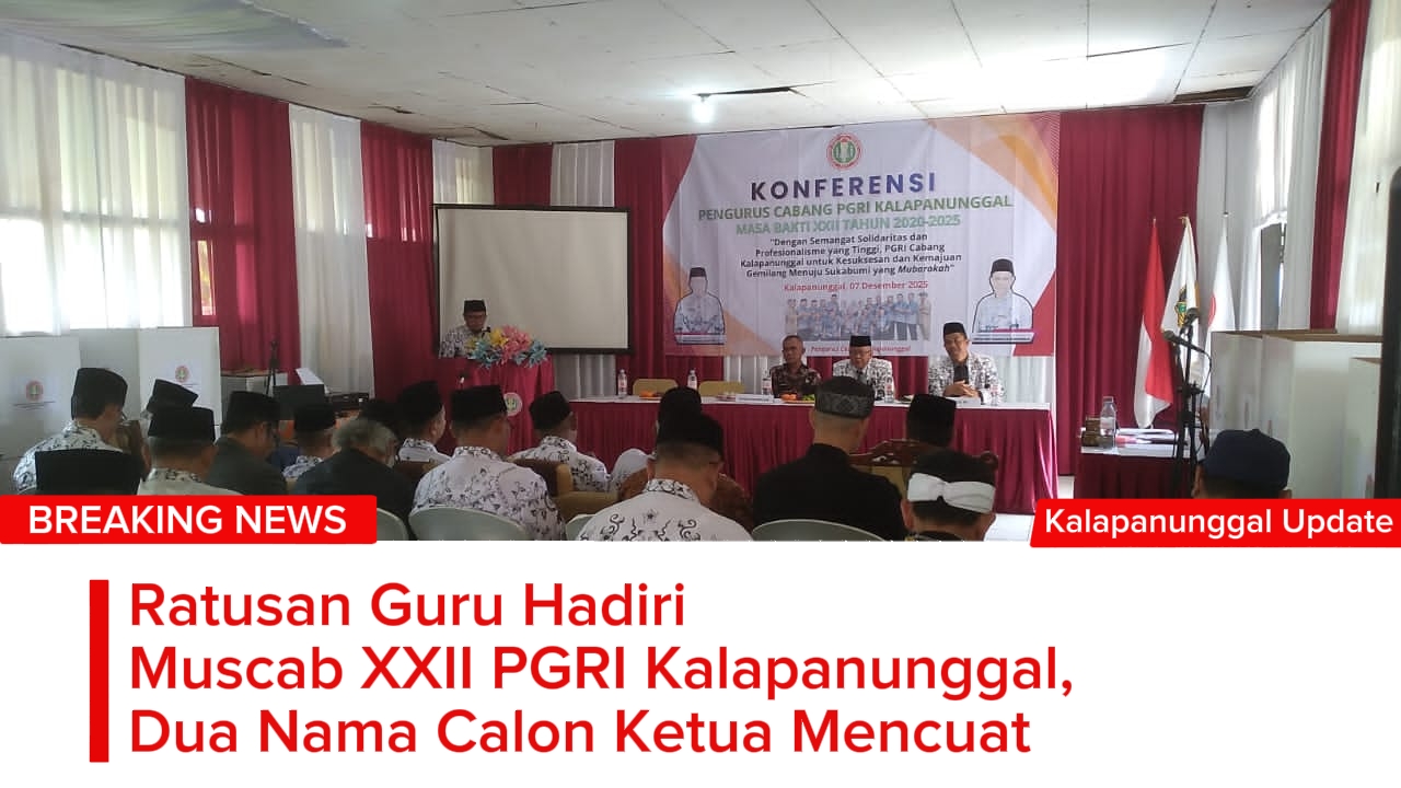 Kalapanunggalupdate.com, PGRI, Kalapanunggal, – Ratusan guru dari berbagai jenjang pendidikan di Kecamatan Kalapanunggal berbondong-bondong memadati Aula SMP Negeri 1 Kalapanunggal pada Minggu (07/12/2025). Mereka hadir dalam Konferensi Pengurus Cabang (Muscab) XXII PGRI Kecamatan Kalapanunggal yang digelar untuk menetapkan arah organisasi sekaligus memilih pengurus baru masa bakti 2025–2030.