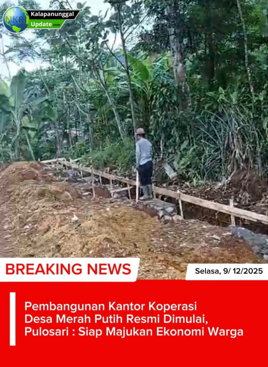 Kalapanunggalupdate.com, Desa Pulosari Kalapanunggal. – ( 9/12/2025 ). Pembangunan Kantor Koperasi Desa Merah Putih di Desa Pulosari, Kecamatan Kalapanunggal, mulai dilaksanakan. Tampak di lokasi kegiatan para pekerja tengah melakukan proses awal pembangunan berupa penggalian dan penyusunan struktur awal konstruksi. Nampak juga separuh pondasi telah mulai dibentuk dengan rangka kayu memanjang sebagai cetakan cor, sementara di sisi kanan terbentang tumpukan galian tanah yang menandakan aktivitas pembangunan sedang berjalan intensif.