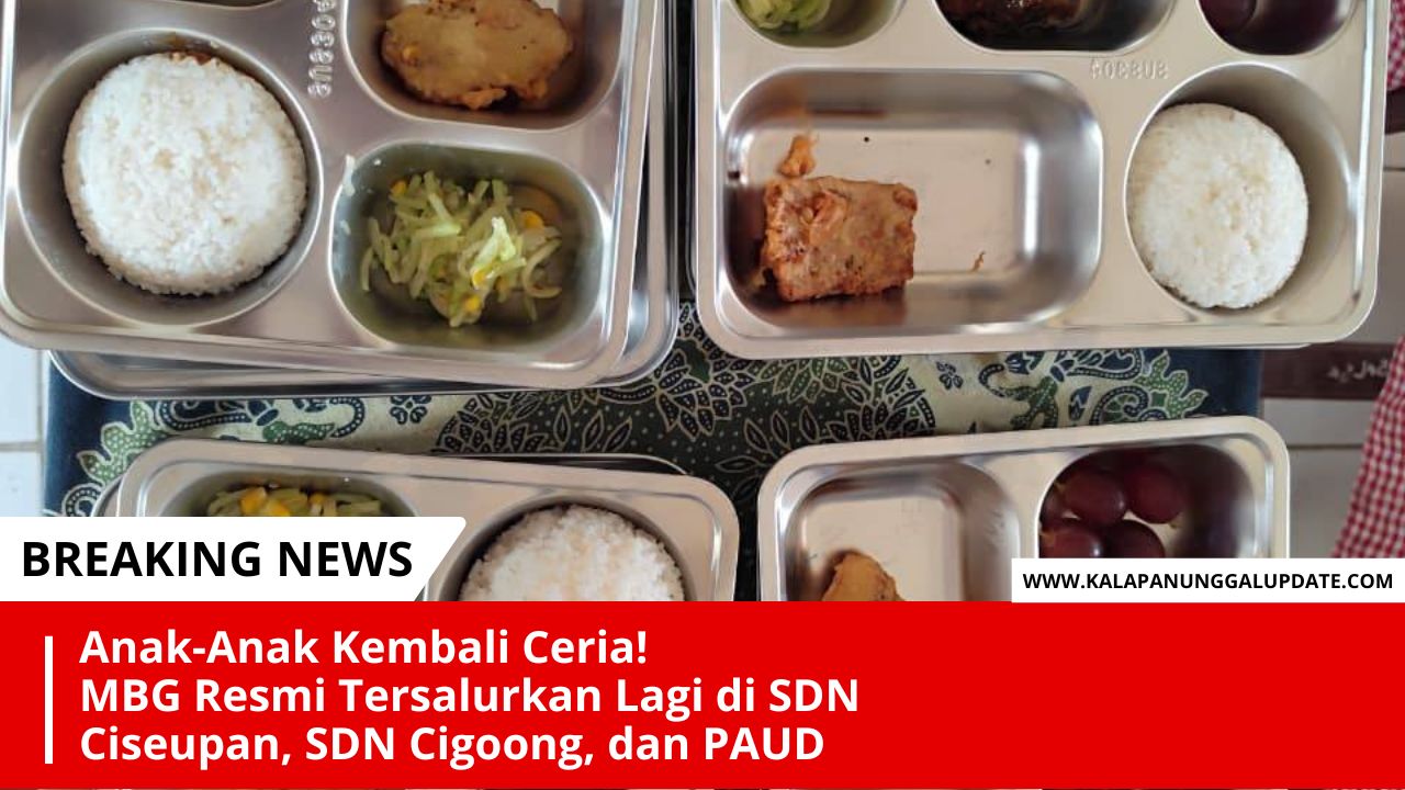 Kalapanunggalupdate.com, Desa Pulosari Kalapanunggal. – Program Makan Bergizi Gratis (MBG) akhirnya kembali tersalurkan di beberapa sekolah, yakni SDN Ciseupan, SDN Cigoong, serta sejumlah PAUD di wilayah Kalapanunggal, Senin ( 8/12/2025 ). Sebelumnya, distribusi MBG sempat terhenti selama kurang lebih dua pekan akibat terkendala proses perpindahan dapur serta perizinan teknis.