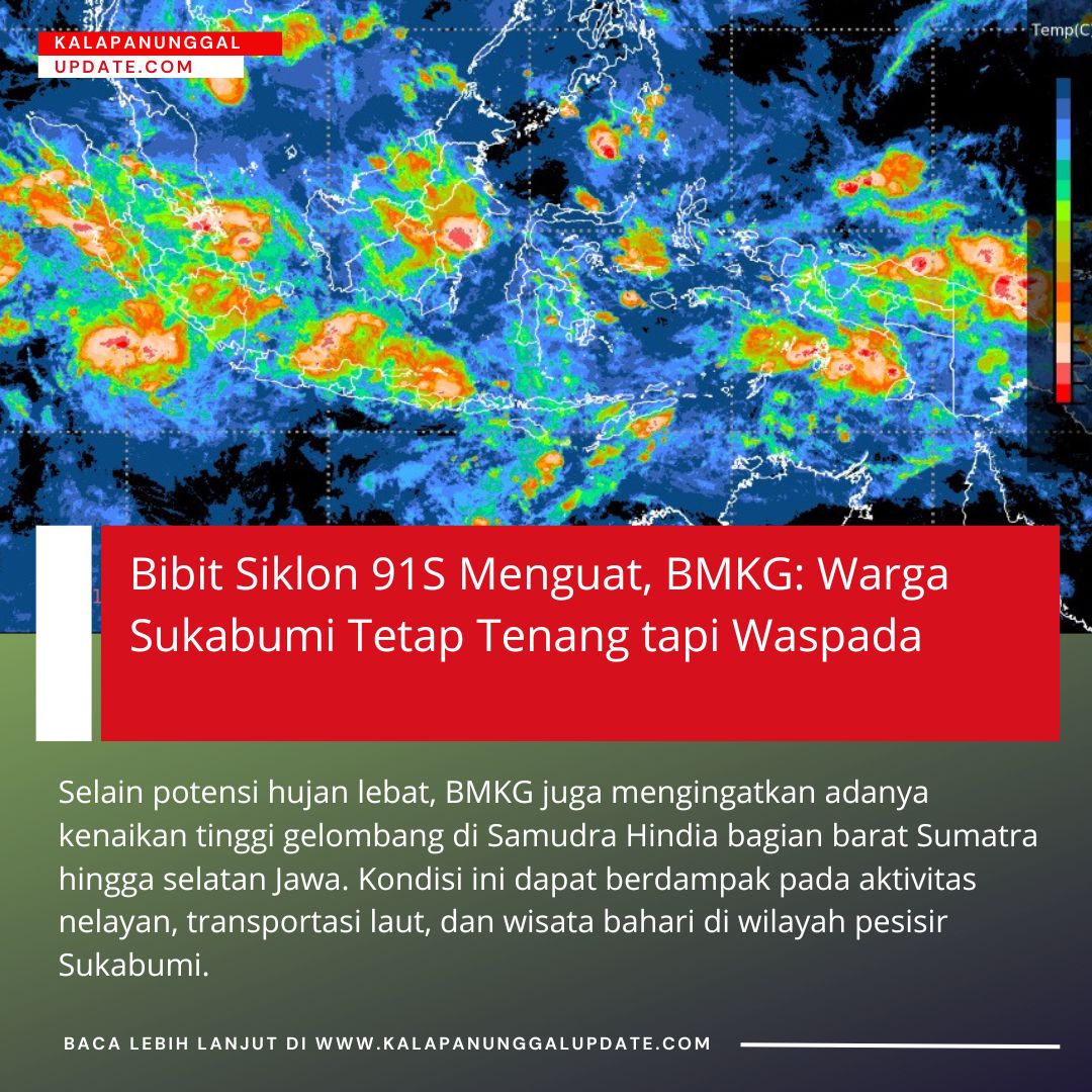 Kalapanunggalupdate.com, BMKG, ( 10 Desember 2025 ). — Badan Meteorologi, Klimatologi, dan Geofisika (BMKG) mengumumkan perkembangan terbaru terkait Bibit Siklon Tropis 91S yang saat ini berada di Samudra Hindia sebelah barat Provinsi Lampung. Meski belum masuk kategori siklon tropis penuh, sistem cuaca tersebut dinilai berpotensi memicu peningkatan curah hujan di sejumlah wilayah Indonesia.