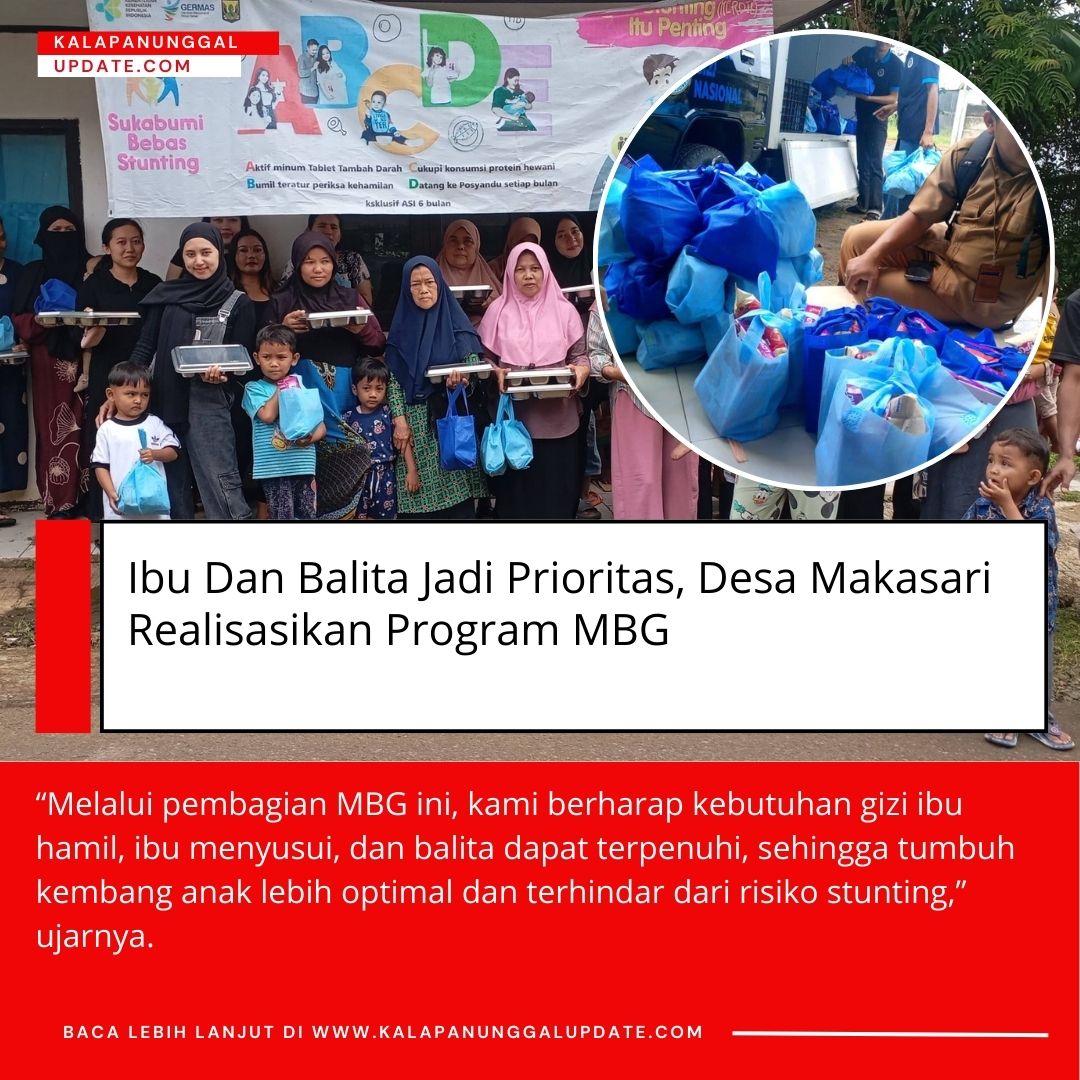 Kalapanunggalupdate.com, Desa Makasari, Kecamatan Kalapanunggal, – ( 15/12/2025 ). Pemerintah Desa Makasari, Kecamatan Kalapanunggal, terus menunjukkan komitmennya dalam mendukung program peningkatan gizi masyarakat melalui realisasi pembagian Makanan Bergizi (MBG) bagi ibu hamil, ibu menyusui, dan balita. Kegiatan tersebut berlangsung dengan lancar dan penuh antusiasme warga, sebagaimana terlihat pada pelaksanaan di salah satu titik layanan desa.