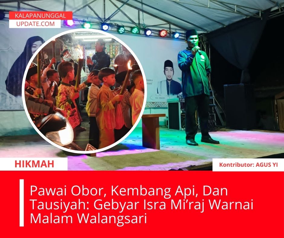 Kalapanunggalupdate.com, Desa Walangsari, Kalapanunggal , – ( 18/12/2025 ). Suasana religius bercampur semarak kebersamaan menyelimuti Desa Walangsari, Kecamatan Kalapanunggal, Kabupaten Sukabumi, Rabu (17/12/2025). Ratusan warga tumpah ruah menghadiri Gebyar Tabligh Akbar Peringatan Isra Mi’raj Nabi Muhammad SAW yang digelar oleh Dewan Kemakmuran Masjid (DKM) Masjid Jami’ Baiturrahim bekerja sama dengan Himpunan Insan Muda Baiturrahim (HIMBARA).