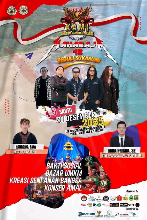 Konser amal ini akan semakin semarak dengan kehadiran band MAHARAJA sebagai bintang tamu utama yang siap menghibur masyarakat dengan penampilan terbaiknya. Tak hanya suguhan musik, acara ini juga diramaikan dengan bazar UMKM lokal, yang menjadi wadah promosi dan penguatan ekonomi masyarakat Sukabumi.