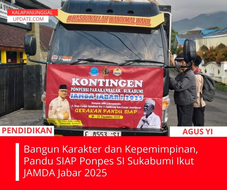Kalapanunggalupdate.com, Kabupaten Sukabumi, — ( 19/12/2025 ). Kontingen Gerakan Pandu SIAP dari Pondok Pesantren Syarikat Islam Indonesia (Ponpes SI Indonesia) Kabupaten Sukabumi menyatakan kesiapan penuh untuk ambil bagian dan menyukseskan kegiatan Jambore Daerah (JAMDA) Pandu SIAP Jawa Barat I Tahun 2025. Kegiatan akbar tingkat provinsi ini dijadwalkan berlangsung pada 19–21 Desember 2025 di Komplek SMK Cokroaminoto, Jalan Raya Cianjur–Sukabumi KM 11, Kecamatan Gekbrong, Kabupaten Cianjur.