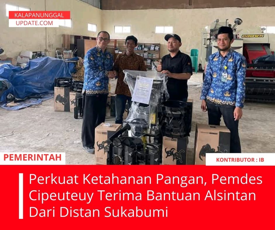 Kalapanunggalupdate.com, Desa Cipeuteuy, Kecamatan Kabandungan Kabupaten Sukabumi, – Rabu, 19 Desember 2025 – Pemerintah Desa (Pemdes) Cipeuteuy, Kecamatan Kabandungan, Kabupaten Sukabumi, menerima bantuan alat dan mesin pertanian (alsintan) berupa tiga unit cultivator dari Dinas Pertanian Kabupaten Sukabumi. Bantuan tersebut diperuntukkan bagi kelompok tani sebagai upaya meningkatkan produktivitas dan efisiensi pengolahan lahan pertanian.