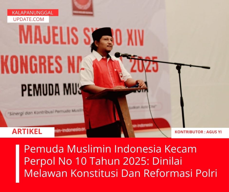 Pimpinan Besar Pemuda Muslimin Indonesia menilai penerbitan Perpol No 10 Tahun 2025 sebagai bentuk pembangkangan terbuka terhadap putusan Mahkamah Konstitusi. Kebijakan ini dianggap berbahaya karena berpotensi mereduksi kewibawaan MK sebagai penjaga konstitusi, sekaligus menciptakan preseden buruk dalam tata kelola negara hukum.