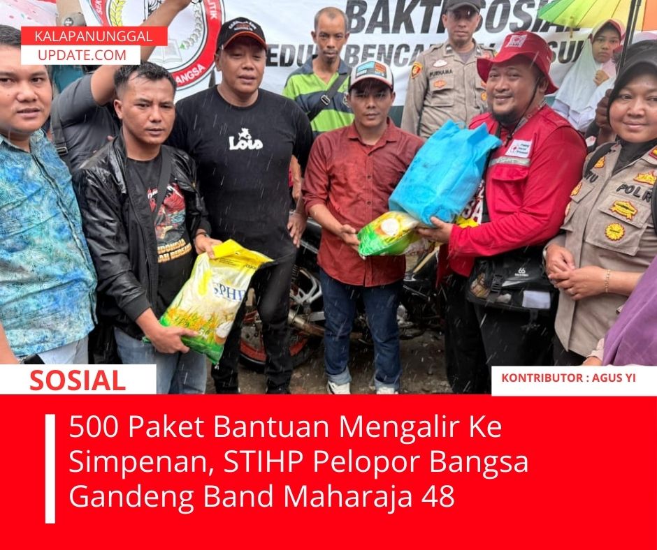 Kalapanunggalupdate.com, Kabupaten Sukabumi, – ( 20/12/2025 ). Kepedulian terhadap korban bencana alam kembali ditunjukkan oleh Sekolah Tinggi Ilmu Hukum dan Politik (STIHP) Pelopor Bangsa bersama Band Maharaja 48. Melalui aksi kemanusiaan, keduanya menyalurkan sebanyak 500 paket bantuan sosial kepada warga terdampak bencana alam di Kecamatan Simpenan, Kabupaten Sukabumi, Sabtu (20/12/2025).