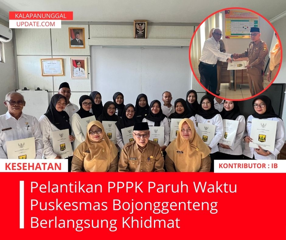 Kalapanunggalupdate.com, Puskesmas Bojong Genteng, Kabupaten Sukabumi, — ( 22/12/2025 ). Giat pelantikan Pegawai Pemerintah dengan Perjanjian Kerja (PPPK) paruh waktu di lingkungan Puskesmas Bojonggenteng berlangsung penuh khidmat pada Senin pagi (22/12/2025). Kegiatan ini menjadi momen bersejarah sekaligus penuh haru bagi para peserta yang resmi menerima amanah sebagai bagian dari pelayanan kesehatan masyarakat.
