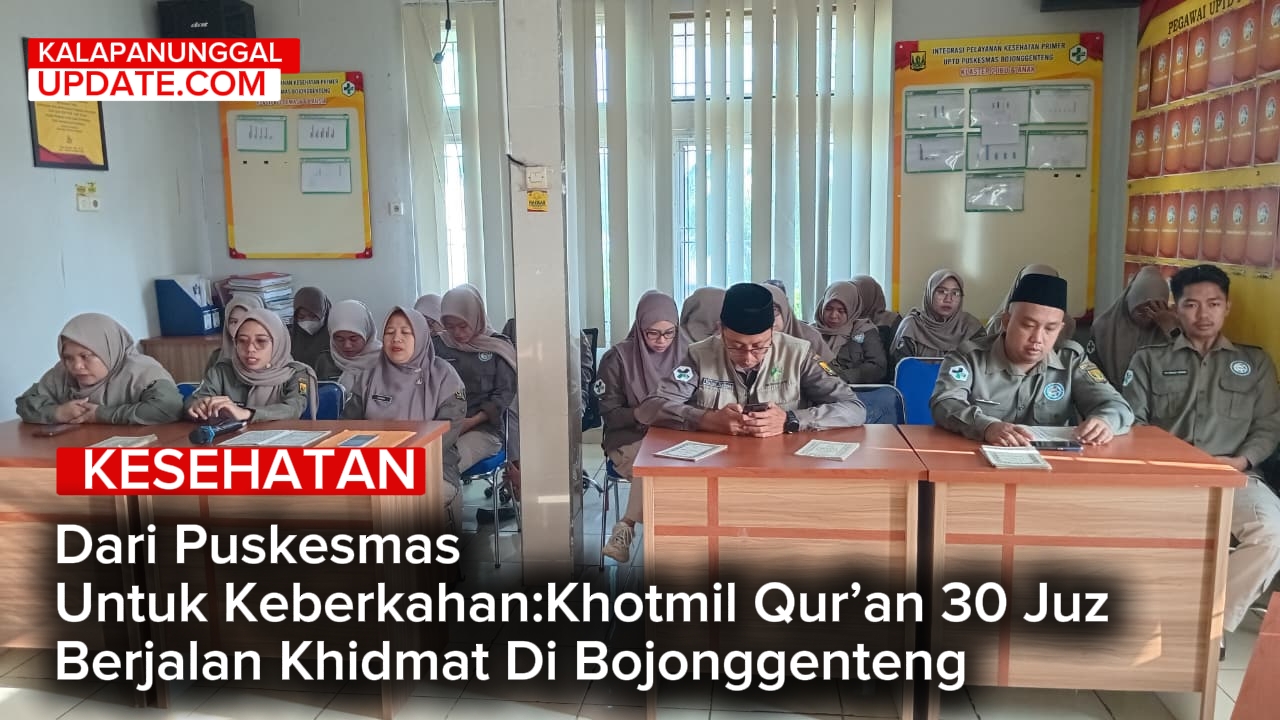 Kalapanunggalupdate.com, PUSKESMAS BOJONGGENTENG, Kecamatan Bojonggenteng, 23 Desember 2025 — Suasana religius dan penuh keberkahan terasa di lingkungan UPTD Puskesmas Bojonggenteng. Kegiatan KTT (Khotmil Tilawah Al-Qur’an) yang rutin dilaksanakan satu kali dalam sepekan setiap hari Selasa terus berjalan dengan khidmat dan istiqomah hingga saat ini.