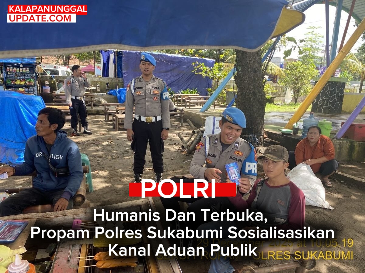 KALAPANUNGGALUPDATE.COM, POLRES Sukabumi. – ( 29/12/2025 ). Seksi Profesi dan Pengamanan (Propam) Polres Sukabumi terus berkomitmen meningkatkan transparansi dan kepercayaan publik terhadap institusi Polri. Hal tersebut diwujudkan melalui kegiatan sosialisasi layanan aduan masyarakat yang dilakukan secara langsung dan humanis di tengah aktivitas warga, Senin (29/12/2025).