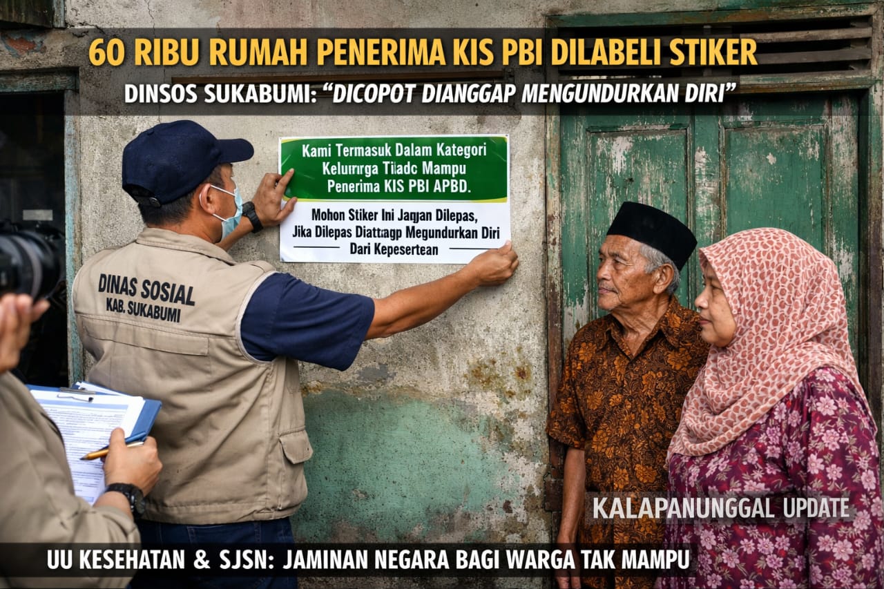 KALAPANUNGGALUPDATE.COM, DINAS SOSIAL KABUPATEN SUKABUMI, – ( 3/1/2025 ). Dinas Sosial (Dinsos) Kabupaten Sukabumi mulai merealisasikan program labelisasi bantuan sosial terhadap sekitar 60 ribu rumah warga tidak mampu yang terdaftar sebagai penerima Kartu Indonesia Sehat (KIS) Penerima Bantuan Iuran (PBI) yang bersumber dari APBD Kabupaten Sukabumi Tahun Anggaran 2025.