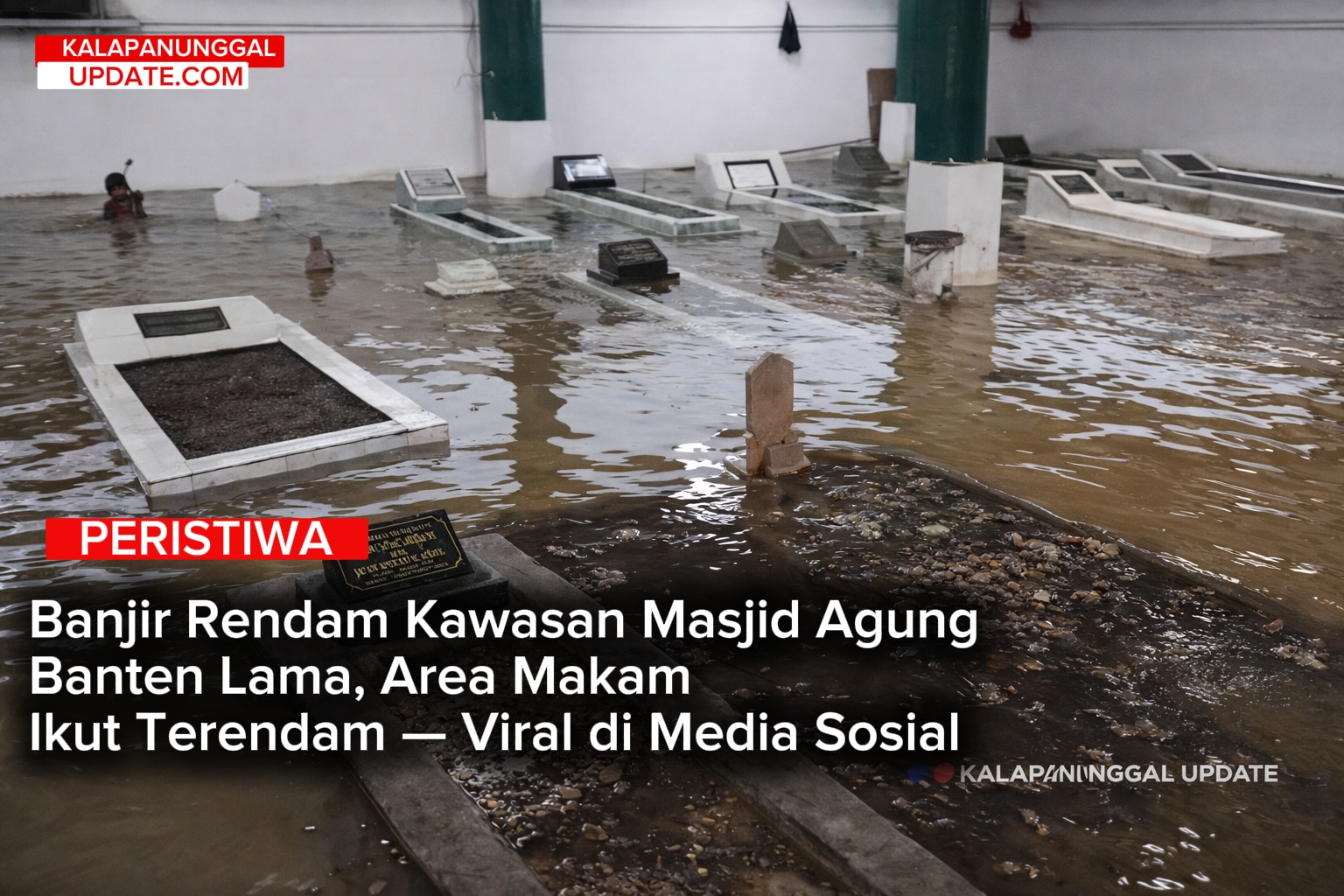 Video dan foto kondisi banjir di kawasan Masjid Agung Banten Lama ramai beredar di media sosial sejak Jumat siang. Unggahan yang memperlihatkan makam-makam terendam air memicu keprihatinan warganet, mengingat kawasan tersebut merupakan salah satu destinasi wisata religi dan situs sejarah penting di Provinsi Banten.