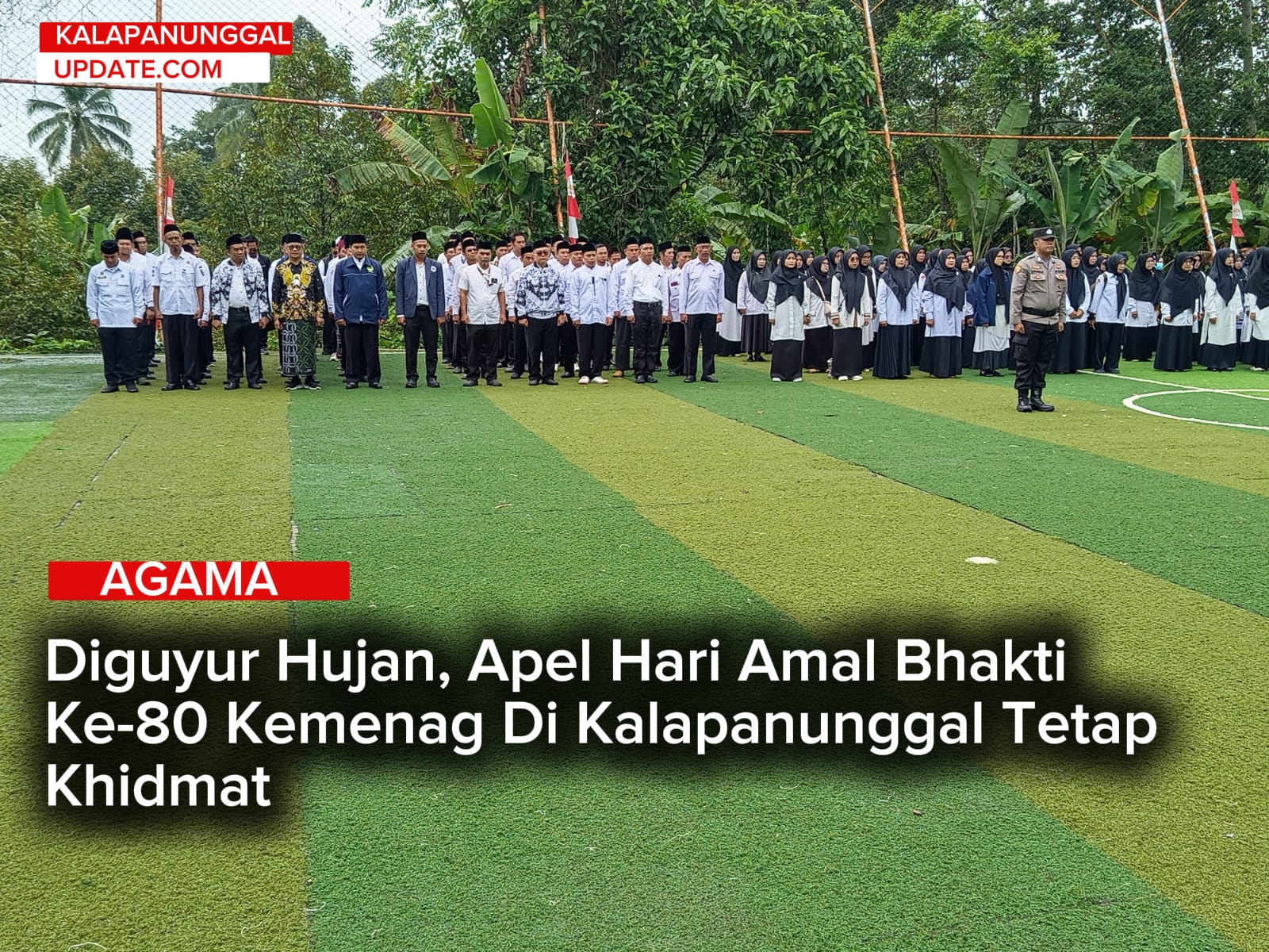 KALAPANUNGGALUPDATE.COM, Kecamatan Kalapanunggal. — ( 3/1/2025 ). Peringatan Hari Amal Bhakti (HAB) ke-80 Kementerian Agama Republik Indonesia di tingkat Kecamatan Kalapanunggal berlangsung khidmat meski diguyur hujan sejak pagi. Apel digelar pada Sabtu, 3 Januari 2026, di halaman Yayasan Darul Ahkam, Desa Gunungendut, Kecamatan Kalapanunggal.