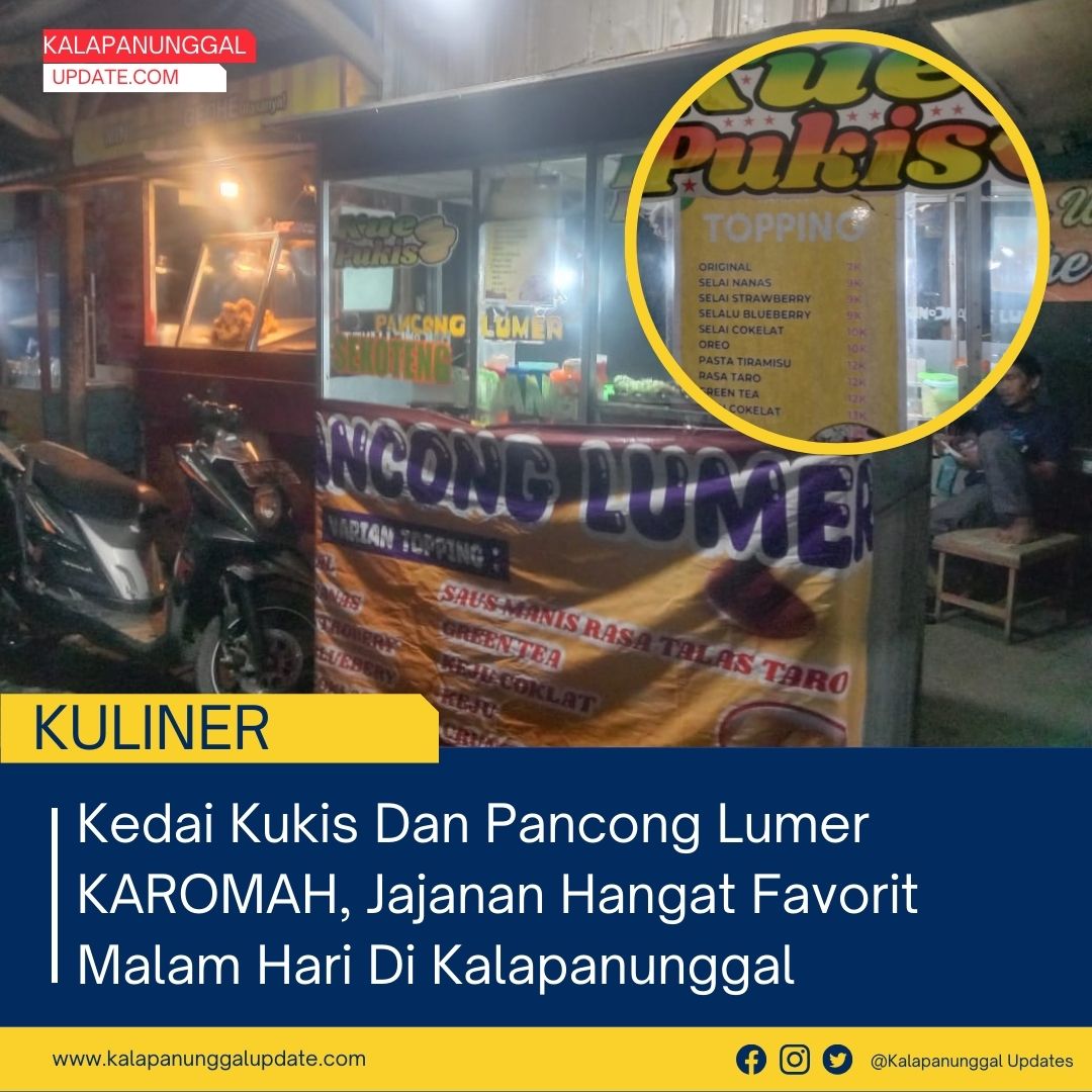 KALAPANUNGGALUPDATE.COM, TALANG, Palasari Girang, Kecamatan Kalapanunggal. – ( 5/1/2026 ). Bagi pecinta jajanan angkringan dan kudapan manis di malam hari, Kedai Kukis dan Pancong Lumer Karomah menjadi salah satu destinasi yang patut dikunjungi. Berlokasi di Jalan Raya Talang RT 14, Desa Palasari Girang, Kecamatan Kalapanunggal, Kabupaten Sukabumi, kedai sederhana ini selalu tampak ramai oleh pengunjung.