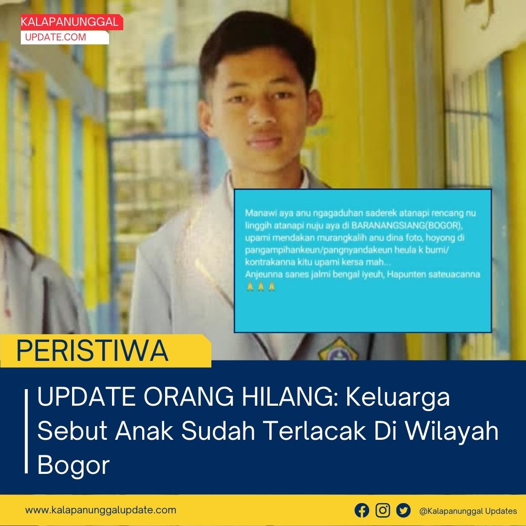 KALAPANUNGGALUPDATE.COM, CIGOONG, PULOSARI, – ( 6/1/2026 ). Kabar terbaru terkait keberadaan anak yang sebelumnya dilaporkan hilang mulai menemukan titik terang. Berdasarkan informasi terkini yang dibagikan pihak keluarga melalui status WhatsApp pribadi, anak tersebut disebut sudah terdeteksi berada di wilayah Baranangsiang, Kota Bogor.