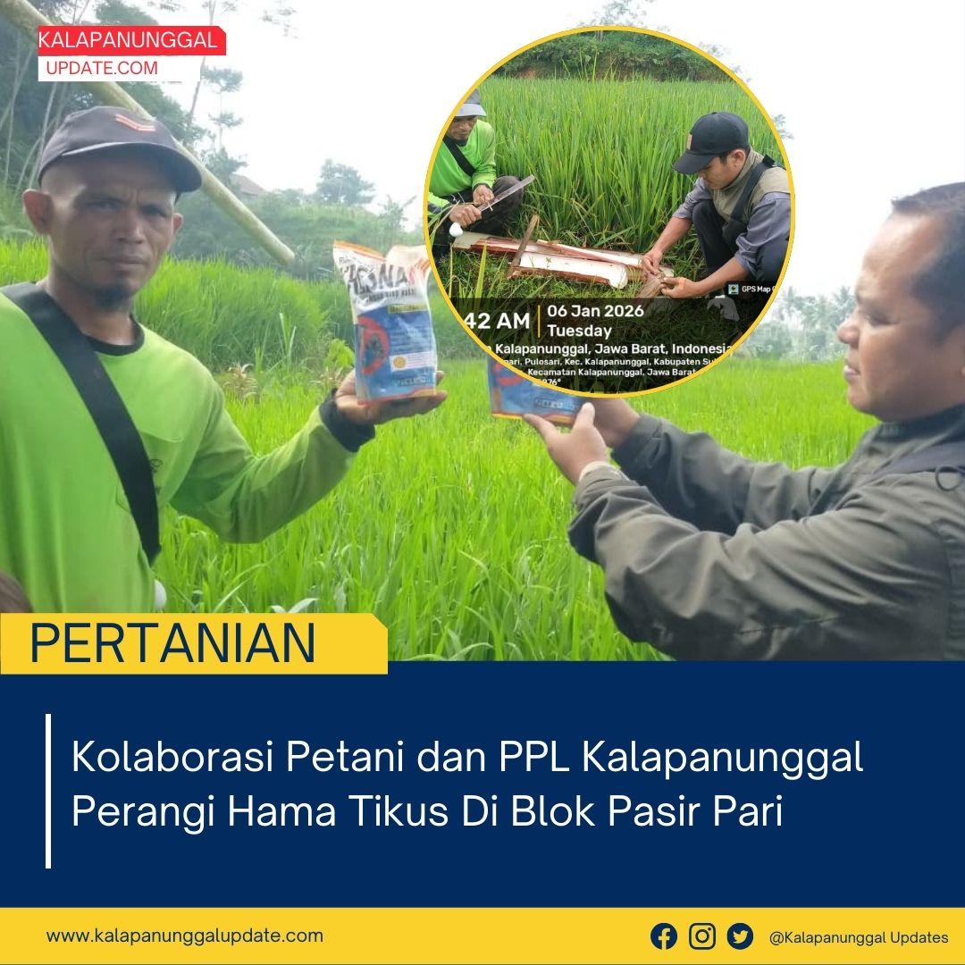 KALAPANUNGGALUPDATE.COM, PASIR PARI PULOSARI, Kalapanunggal | Selasa, 6 Januari 2026 — Ancaman hama tikus yang menyerang tanaman padi kembali menjadi perhatian serius petani di Blok Pasir Pari, Desa Pulosari, Kecamatan Kalapanunggal, Kabupaten Sukabumi. Untuk menekan dampak kerusakan yang semakin meluas, para petani setempat berkolaborasi aktif bersama Petugas Penyuluh Lapangan (PPL) Kecamatan Kalapanunggal melakukan langkah-langkah pengendalian secara terpadu di area persawahan.