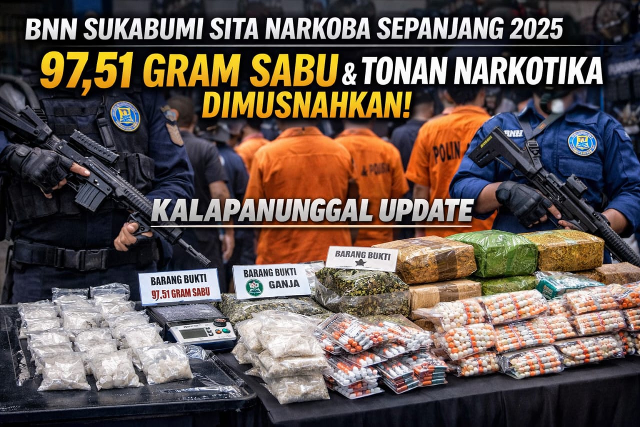 KALAPANUNGGALUPDATE.COM, Sukabumi, — ( 7/1/2026 ). Sepanjang tahun 2025, Badan Narkotika Nasional (BNN) bersama jajaran penegak hukum di Sukabumi terus mempertegas komitmen pemberantasan peredaran narkotika dan obat berbahaya di wilayah Jawa Barat, khususnya Kabupaten dan Kota Sukabumi.