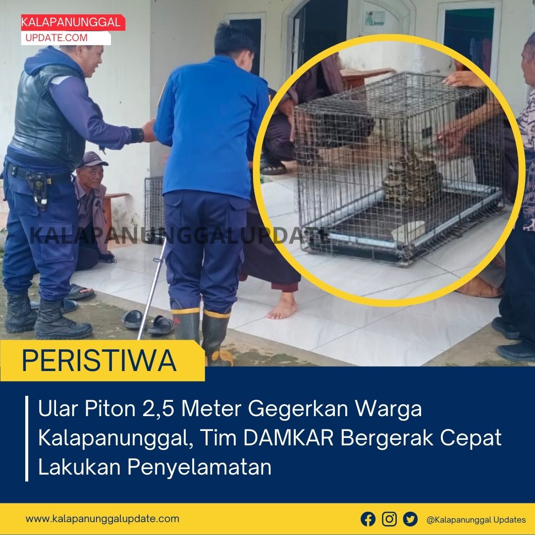 KALAPANUNGGALUPDATE.COM, DAMKAR POS KALAPANUNGGAL, Kalapanunggal, – ( 8/1/2026 ). Sukabumi – Ketegangan sempat menyelimuti warga Kampung Kalapanunggal, Kecamatan Kalapanunggal, Kabupaten Sukabumi, pada Kamis, 8 Januari 2026. Seekor ular piton berukuran besar dengan panjang sekitar 2,5 meter dan berat diperkirakan ±3 kilogram mendadak muncul di area permukiman warga.