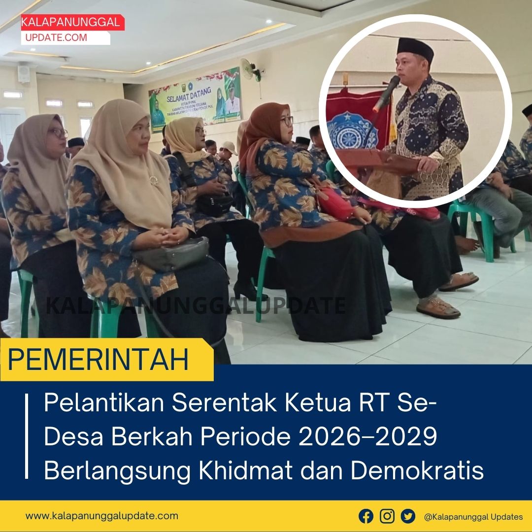 KALAPANUNGGALUPDATE.COM, DESA BERKAH, Bojonggenteng. — ( 9/1/2026 ). Suasana Aula Desa Berkah tampak berbeda pada Jumat siang, 9 Januari 2026. Balutan busana batik yang dikenakan para undangan menambah kesan khidmat dalam Pelantikan Serentak Ketua Rukun Tetangga (RT) Se-Desa Berkah periode 2026–2029, sebuah momentum penting hasil dari proses demokrasi tingkat paling dekat dengan masyarakat.