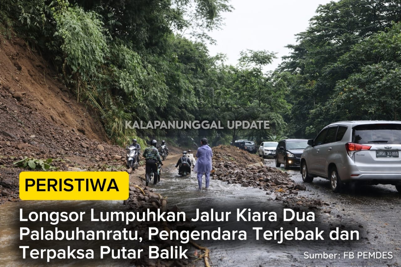 KALAPANUNGGALUPDATE.COM, Palabuhanratu. – ( 15/1/2026 ). Musibah longsor kembali terjadi dan melumpuhkan akses vital di Jalur Kiara Dua, Palabuhanratu, pada hari ini. Longsoran material tanah, batu, dan lumpur menutup sebagian badan jalan, diduga kuat akibat intensitas hujan lebat yang mengguyur wilayah tersebut sejak semalaman.