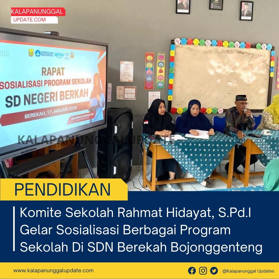 KALAPANUNGGALUPDATE.COM, SDN BEREKAH, Kecamatan Bojonggenteng. – 17/1/2026 ). Komite Sekolah SDN Berekah, Kecamatan Bojonggenteng, menggelar kegiatan sosialisasi yang dipimpin langsung oleh Rahmat Hidayat, S.Pd.I, pada Sabtu, 17 Januari 2026. Kegiatan yang berlangsung di lingkungan SDN Berekah ini diikuti dengan antusias oleh para orang tua siswa, dewan guru, serta pihak sekolah.