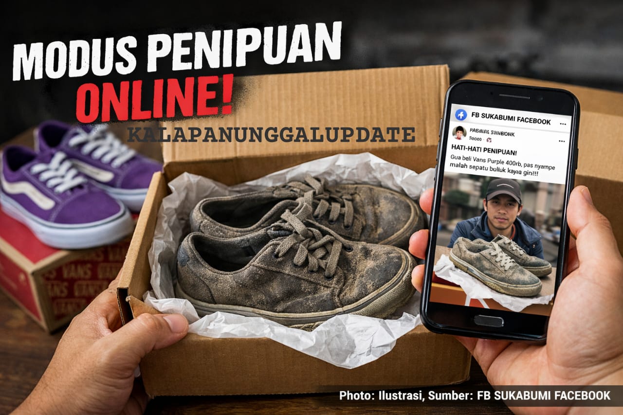 KALAPANUNGGALUPDATE.COM, SUKABUMI, – ( 18/1/2026 ). Kasus penipuan jual beli online kembali mencuat dan menjadi perbincangan hangat di media sosial. Kali ini, seorang warganet mengaku menjadi korban modus baru penipuan saat membeli sepatu bermerek melalui platform online dengan sistem pengiriman jasa ekspedisi.
