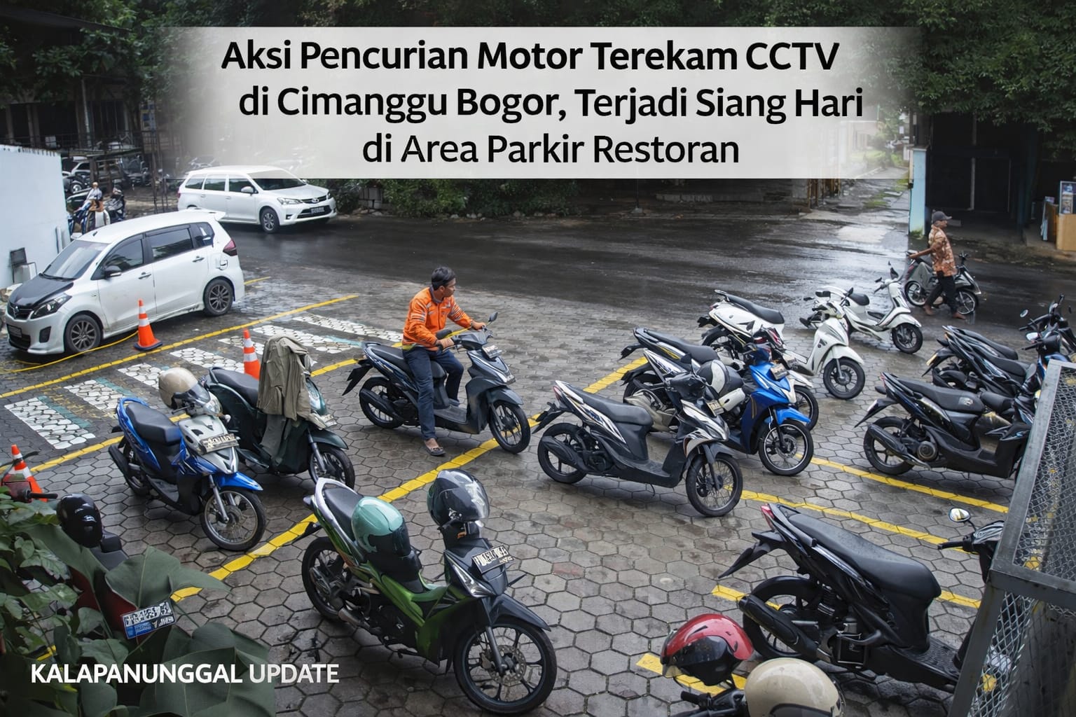 KALAPANUNGGALUPDATE.COM, Bogor – Aksi pencurian kendaraan bermotor roda dua kembali terjadi di wilayah Cimanggu, Kota Bogor. Kali ini, peristiwa tersebut terekam jelas oleh kamera pengawas (CCTV) yang terpasang di area parkir Restoran Labbaik Chicken, pada Jumat, 17 Januari 2026, sekitar pukul 15.04 WIB.