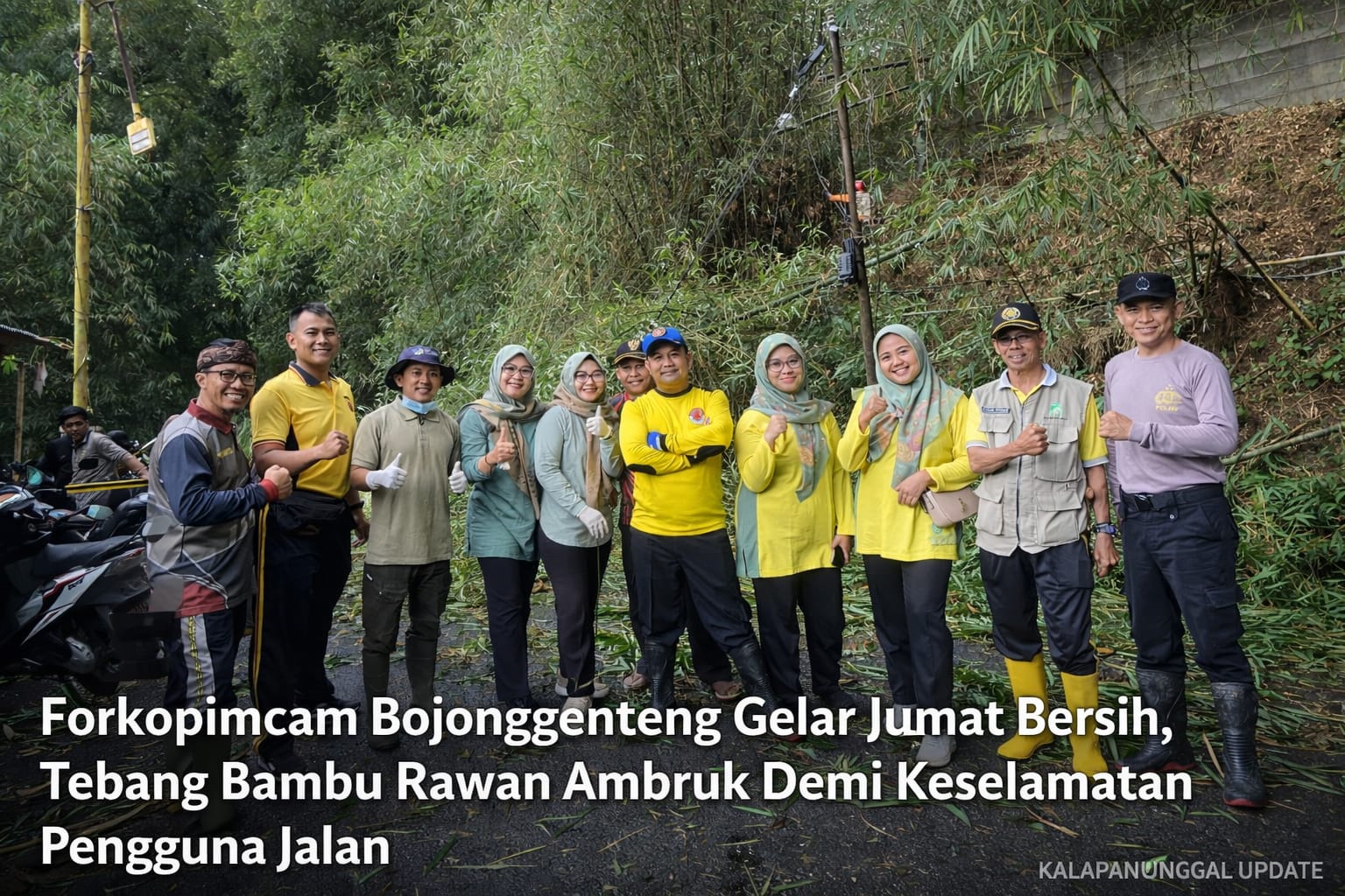 Kegiatan ini melibatkan para kepala dan pimpinan instansi terkait yang turun langsung ke lapangan melakukan penebangan pohon-pohon bambu yang tumbuh di pinggiran jalan raya. Diketahui, sejumlah bambu tersebut dalam kondisi condong ke badan jalan dan berpotensi ambruk sewaktu-waktu, sehingga dapat membahayakan pengguna jalan.
