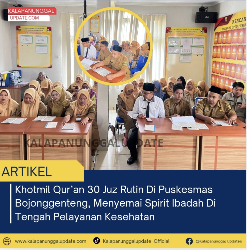 KALAPANUNGGALUPDATE.COM, Puskesmas Bojonggenteng. – ( 27/1/2026 ). Di tengah padatnya aktivitas pelayanan kesehatan kepada masyarakat, UPTD Puskesmas Bojonggenteng menunjukkan bahwa kesibukan duniawi tidak menjadi penghalang untuk terus mendekatkan diri kepada Allah SWT. Setiap hari Selasa, jajaran pegawai Puskesmas Bojonggenteng secara rutin menggelar kegiatan Khotmil Qur’an 30 Juz, sebuah tradisi spiritual yang sarat makna dan keteladanan.